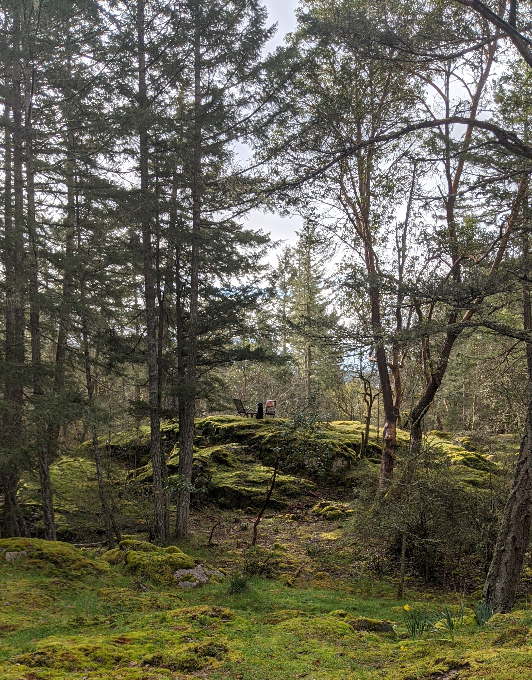 Tom has turned work-from-home into work-from-island as he puts the finishing touches on his Salt Spring hideaway with the company of his pup Luna (seen here sitting by Tom's favorite lookout).