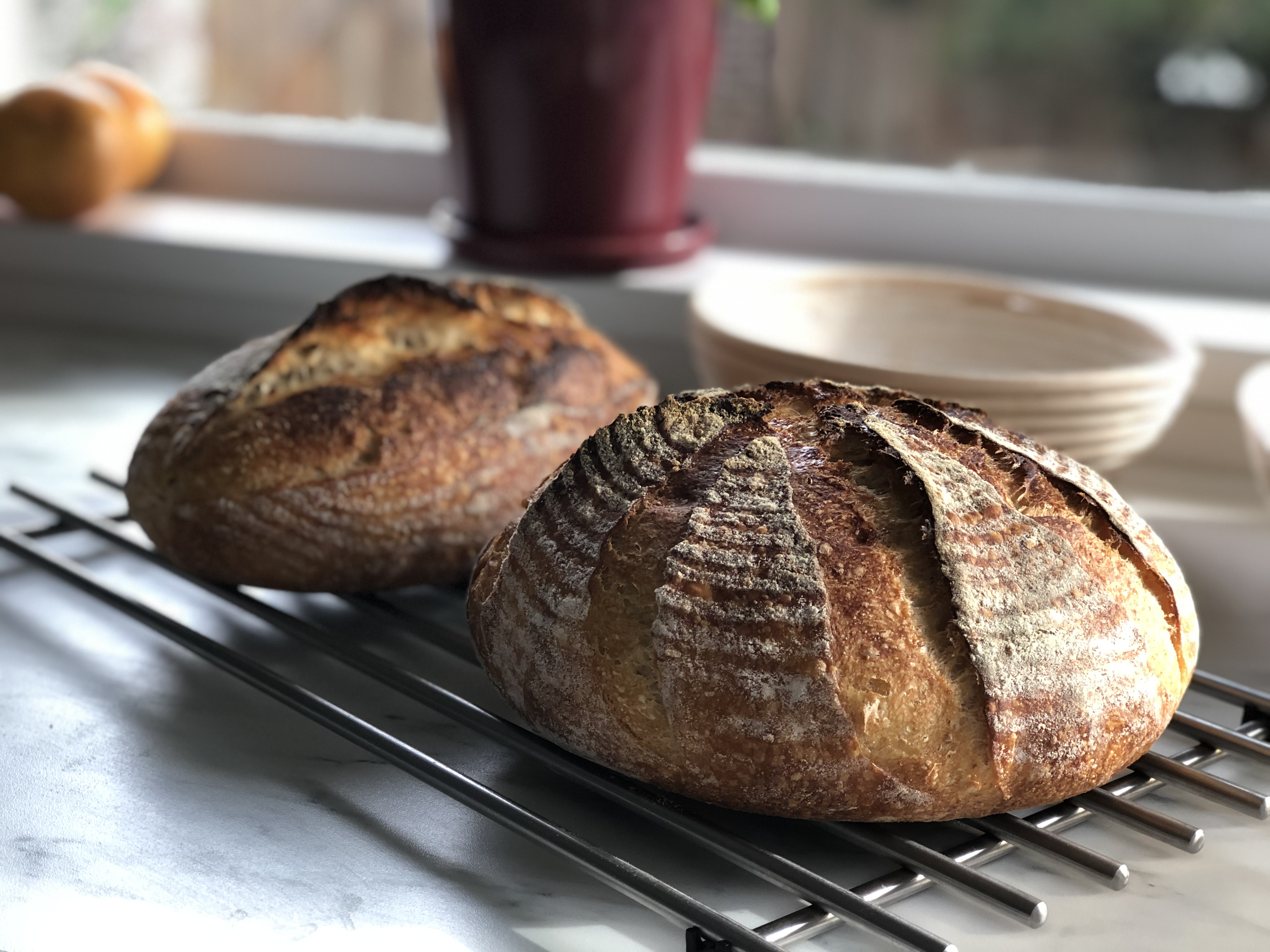 Rob has taken a keen interest in bread making over the past few weeks and recently baked up these naturally leavened country style loaves.