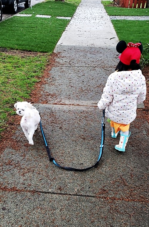 Karen has been teaching her daughter how a guard dog can help with social distancing practices.